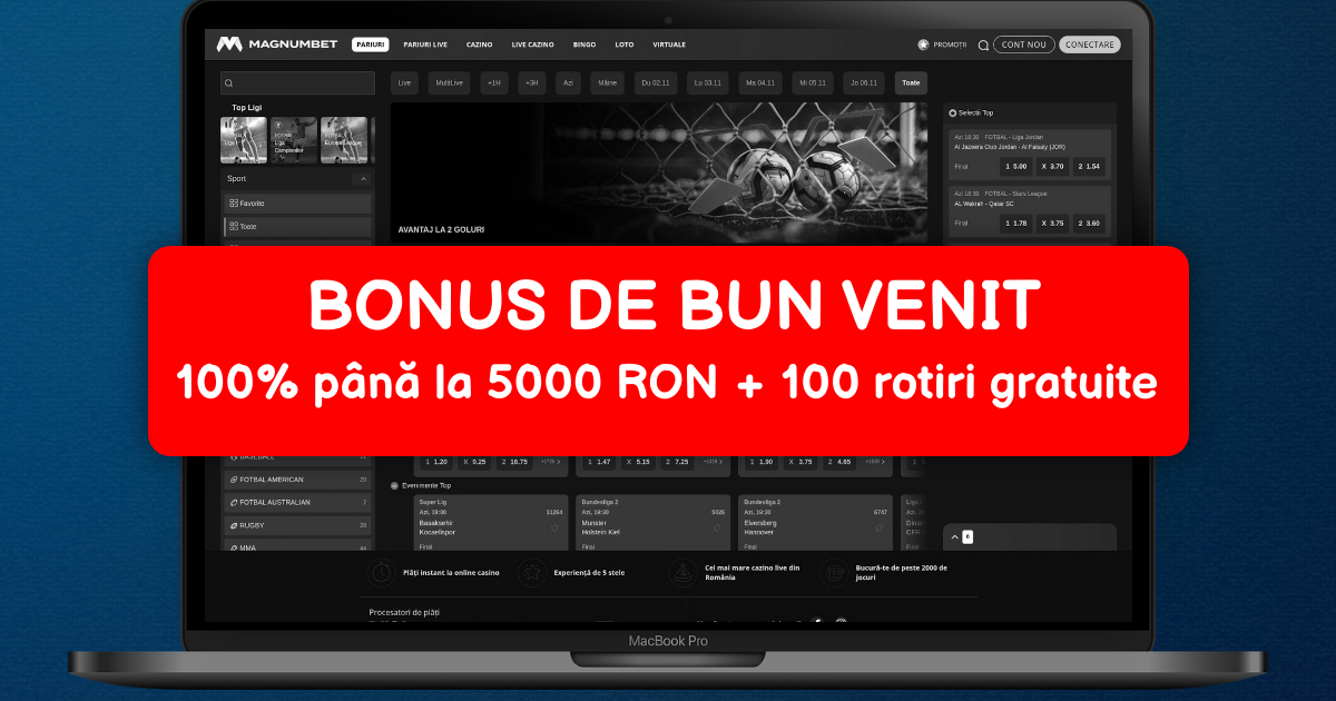 Magnum Casino întâmpină jucătorii noi cu un pachet de bun venit generos care poate ajunge până la 3.300 RON, împărțit pe primele depuneri. Prima depunere este bonificată cu 100% până la 1.000 RON, a doua cu 50% până la 1.000 RON, iar a treia cu 30% până la 1.300 RON. Această structură permite jucătorilor să își mărească considerabil capitalul de joc de la început.